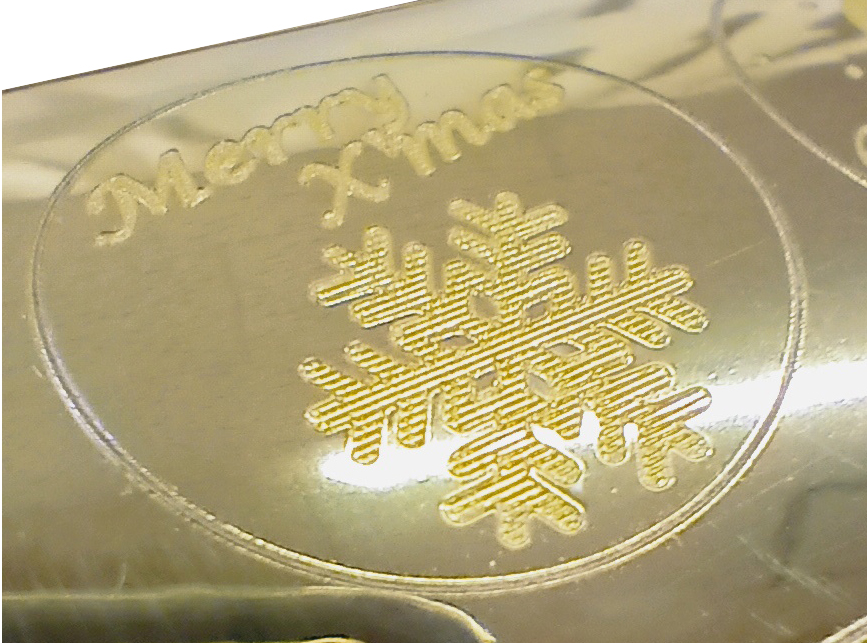 シールの表面に直接6〜8ミクロン程レーザーで刻印しております。